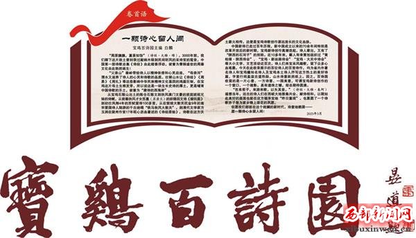 由宝鸡著名诗人白麟策划主编的“宝鸡百诗园”,收录展示的一百位诗人的一百首诗作,均为省内外著名诗人和宝鸡籍知名诗人及宝鸡本土诗人礼赞秦岭渭水、讴歌陈仓热土的美好诗篇,字里行间盈溢古道热肠,山水诗意跃然纸上。这些诗作被制作成精美的展板依次悬挂,成为福泽园内一道靓丽的风景线。这种颇具古风的“墙头题诗”的方式,意将百诗园打造成宝鸡一个文化网红打卡地。也是宝鸡新诗创作的一个窗口和缩影。