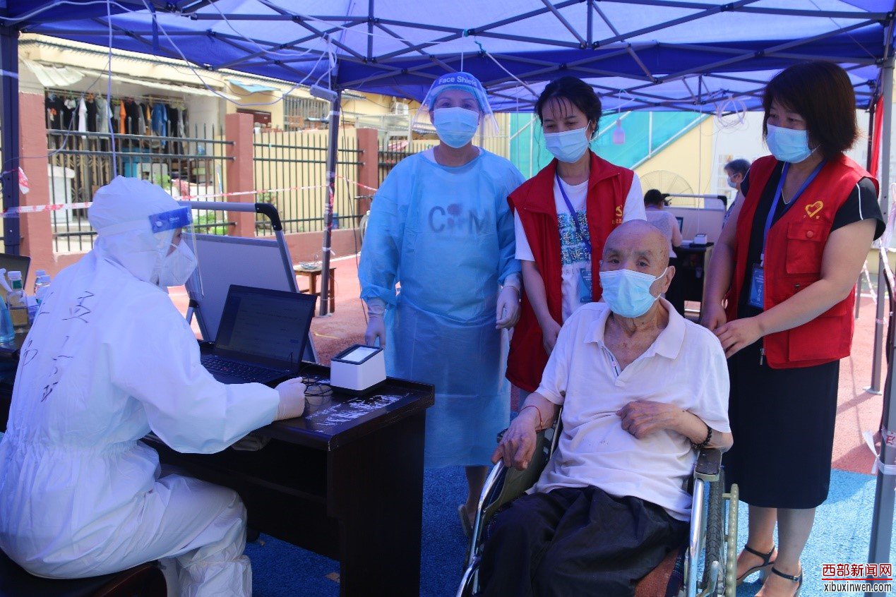 8月初的西安气温高达37度,简易帐篷里的温度就更高,蒸笼般的环境,身着防护服的样本采集人员一工作就是一个上午,脱掉防护服整个人就像从水里出来一样。8月6日中午在高温下工作了一上午的张萌突然中暑,在场的工作人员赶忙把她扶进社区办公室,浑身湿透的她脸色通红,社区居民吴瑾打来热水为她擦汗,又把换下的衣服拿回家洗干净。当稍事休息的张萌又要走向工作现场时,大家纷纷劝说不要再去了,累垮了可怎么办呀!在场的五六个社区干部、群众都留下了心疼的泪水。由于省结核病防治研究所医务人员的加入,该社区不但完成了自己的任务,还为一路之隔的西安工程大学社区群众进行检测,4天时间接受检测的群众达到1.2万多人。东关南街街道仁厚社区党支部书记、社区主任王梅饱含深情地说。