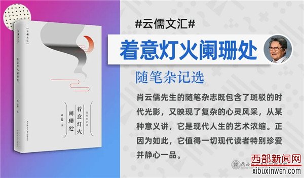 在他(肖云儒)十分年轻的时候,提出过关于散文创作的“形散神不散”的观点,上世纪80年代末,他最早研究中国西部文化和文艺的问题,撰写出版了国内第一部《中国西部文学论》专著。