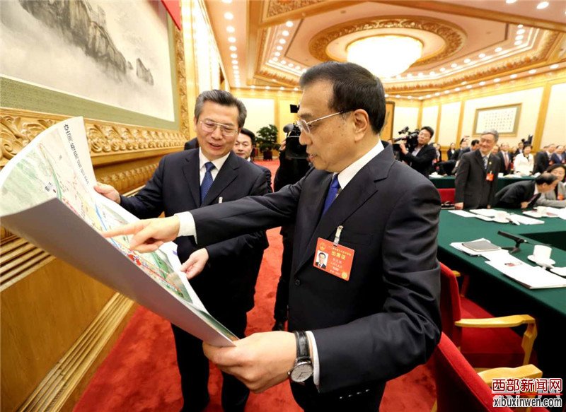 西部新闻网讯 李克强总理9日上午来到十二届全国人大五次会议陕西代表团,与代表共同审议报告。