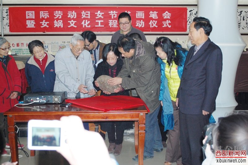 西部新闻网 讯 2014年3月8日,国际劳动妇女节书画笔会暨女娲文化工程起动仪式在北京鸿福楼举行,活动现场,女书画家们巾帼不让须眉,以歌颂女性风采,弘扬母亲文化为主题,和到会的男书画家们创作出一幅幅优秀作品。