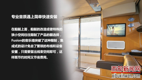 在船艇上面,船艇的改造或者特殊的狭小空间往往限制了产品的选择,Fusion的音乐墙突破了这种限制,集成式的设计免去了繁琐的布线和设备安置,只需要留出线束空间即可,这样既节约时间又节省费用。