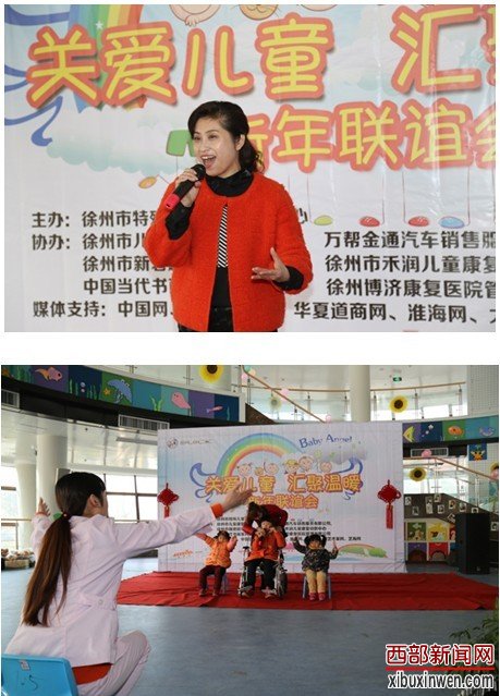 中国网消息:(记者 蔡广银)元旦来临之际,由徐州市特殊儿童家长资源中心主办,徐州市儿童康复学会、万邦金通汽车销售服务有限公司、徐州市新君越车友会、徐州市禾润儿童康复幼教中心、徐州市博济康复医院管理有限公司、中国当代书画家网美术馆等共同协办的“关爱儿童 汇聚温暖”新年联谊会,在徐州市禾润儿童康复幼教中心举行。