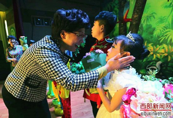 启动仪式之后,由西安市妇女儿童活动中心果色奇香文化艺术天使团打造的大型儿童剧《白雪公主》闪亮登场。剧中的小演员最小的5岁,最大的11岁。剧组经过20余次课时的排练,将童话故事《白雪公主》完整地呈现并进行了创新,除了表现了传统的剧情外,在台词、歌曲、舞蹈上还融入了当下流行、孩子们喜闻乐见的现代元素,其多元的表现力、多彩的内容赢得了现场观众热烈的掌声。虽然剧组里的小演员都是没有表演经验的孩子,但是,经过训练,他们在舞台上个个有板有眼,像模像样,观众们赞叹声、叫好声连连。观众赵女士说:“我的孩子看得很兴奋,因为是同龄人在演出,所以孩子看着更加亲切,没有距离感。”