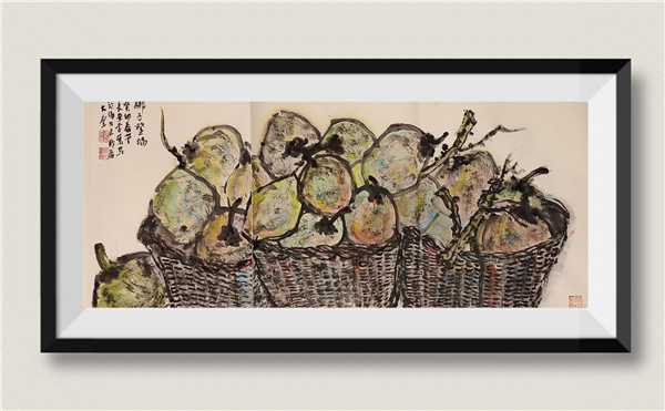 回到西安画室后,又经过一周的打磨和加工提升,完成后通过微信发给老师著名山水画大师崔振宽先生讨教,崔先生看后回复道:首先给你的作品点赞送花!精品首推《椰子登场》《东坡书院》,其他也不错!