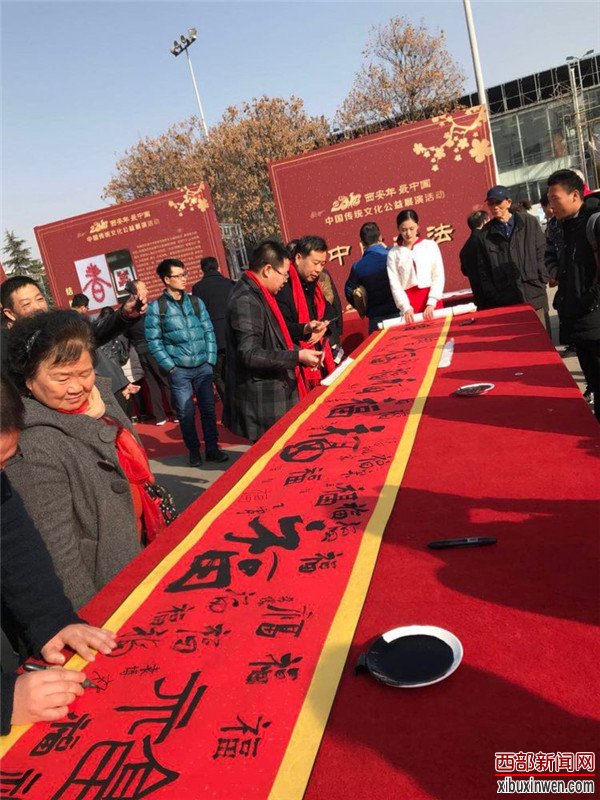 活动现场吸引了数千名群众积极观看和参与,尤其是书法活动"十米长卷千人送福"环节受到群众的喜爱,现场多名市民纷纷参与,写下自己的祝福,与书法家共同绘制了一副具有浓浓中国年的10米祝福长卷,让西安向全世界展示自己传统文化的魅力与影响力。