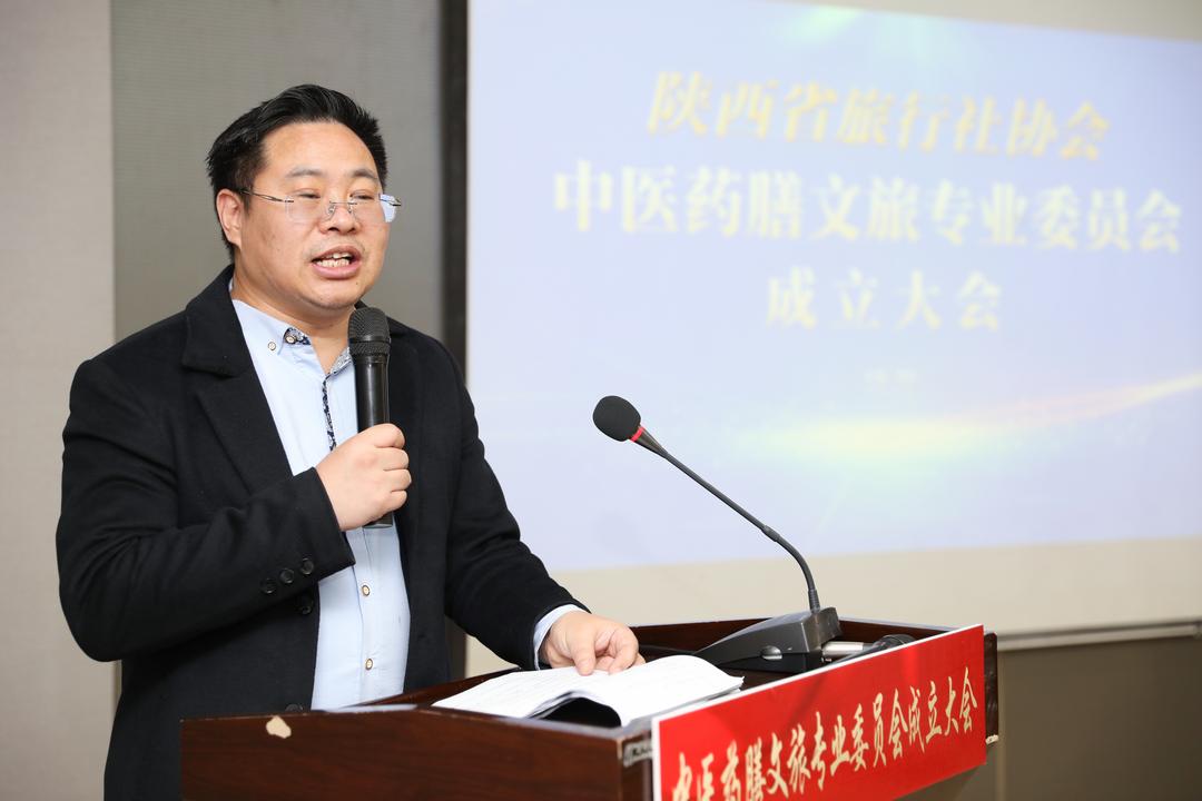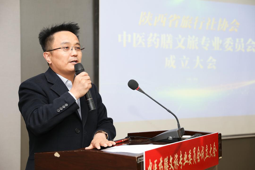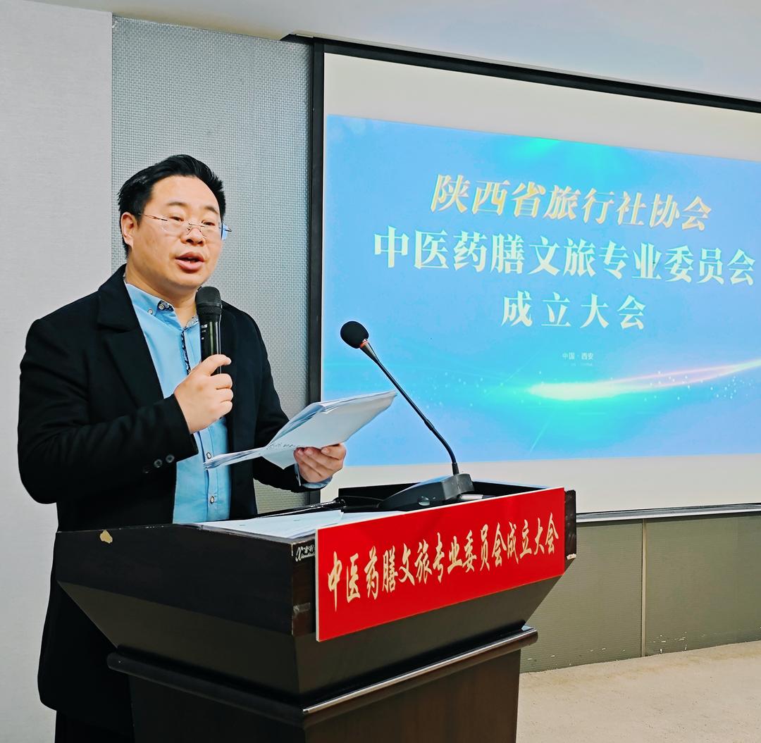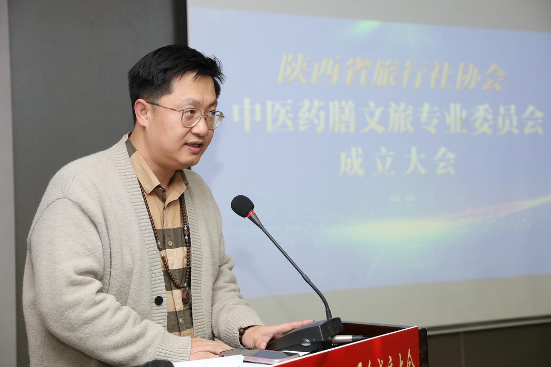 陕西省旅行社协会会长张军发表讲话,他指出,中医药膳文旅专委会的成立,是陕西文旅产业与大健康产业跨界融合的创新突破,更是传承中华优秀传统文化、打造陕西文旅新名片的重要举措。协会将全力支持专委会建设,推动资源整合、标准制定、产品创新,助力陕西药膳文旅产业行稳致远。