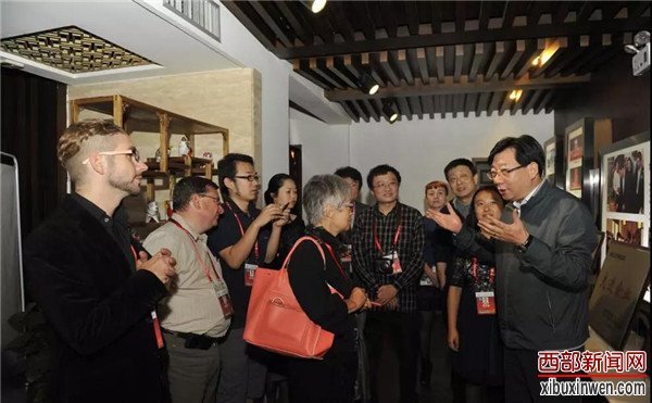 2015.9.24,雍涛向参加欧亚经济论坛的各国嘉宾介绍秦腔和易俗社