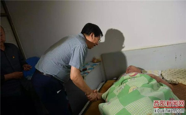 2017年雍涛带领三意社在蓝田县黄沟村开展扶贫惠民送戏演出期间,看望慰问贫困老党员