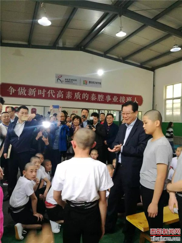 雍涛与秦腔委培班学生交流,为他们所取得的成绩鼓掌点赞