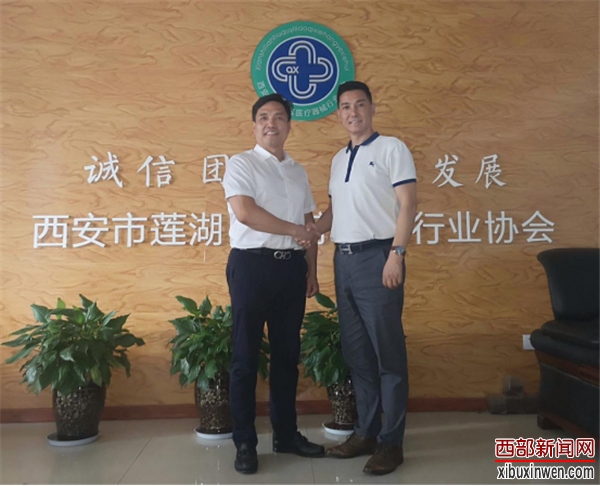 商会理事单位陕西宏达医疗器械保健品有限公司位于西安市最大的医药市场——汉城路医药市场,该公司经营卫生材料、一次性耗材、不锈钢推车柜、手术器材、高档监护病床等。公司总经理陈岭是西安市莲湖区医疗器械行业协会会长,魏光会长一行与陈岭会长一起探讨了商协会运营管理方法,并就两会之间定期互访走动,加强企业之间沟通联系等事宜达成共识。