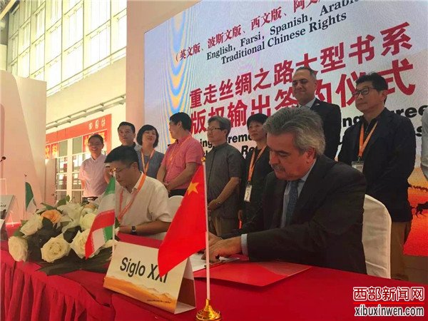 这次国际书博会主宾国伊朗文化宣传大使何飞(伊朗籍)先生,墨西哥西格拉出版社总经理卡斯特罗先生,著名文化学者、国内首位丝路文化宣传大使肖云儒先生,陕西卫视《丝路万里行》节目组代表靳宝强先生等出席了签约仪式。