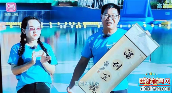 日前,深圳卫视联合西安欢乐谷携手打造都市水上趣味解压综艺《夏日冲击波》正式开播,西部新闻网总编辑张龙亮相深圳卫视夏日冲击波,并题字《深圳卫视》   ,其自创“龙体”书法笔法刚劲有力,浑然天成,成为当日节目一大亮点。