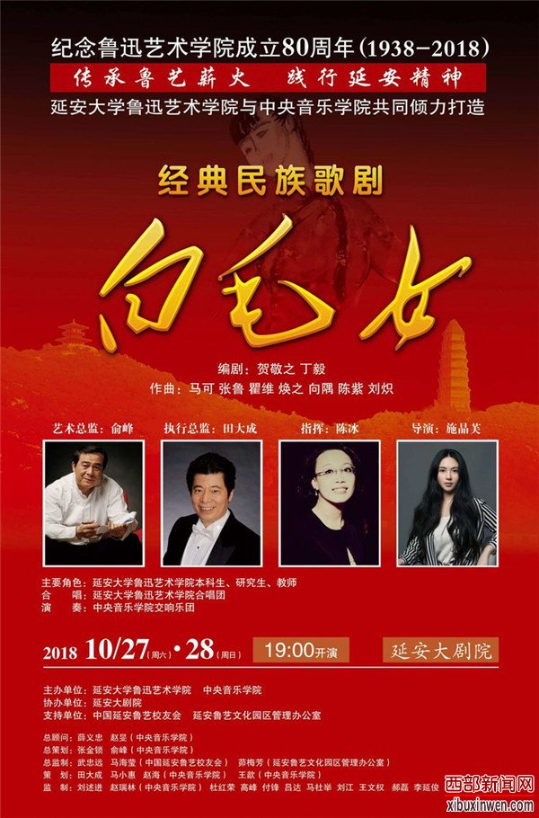西部新闻网讯 (记者 张栢溪)传承鲁艺薪火,践行延安精神。为纪念延安鲁艺创立80周年,由延安大学鲁迅艺术学院与中央音乐学院共同倾力打造的民族歌剧《白毛女》,将于10月27、28日在延安大剧院隆重上演。歌剧《白毛女》编剧之一、94岁高龄的贺敬之先生闻讯后非常高兴,提前祝贺演出取得圆满成功,特为本次演出题词“传承鲁艺薪火,践行延安精神”。