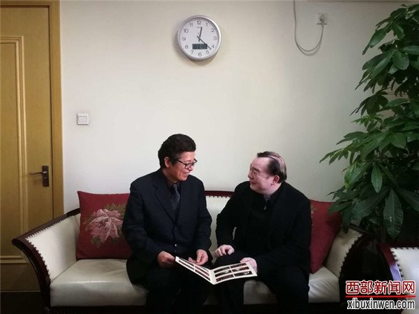 延安大学鲁迅艺术学院院长田大成和著名指挥家、中央音乐学院院长俞峰亲切交流