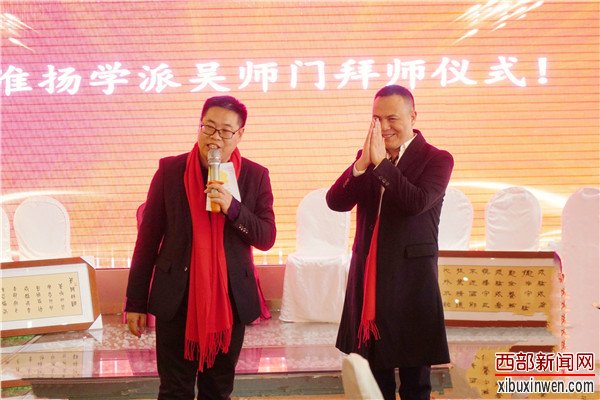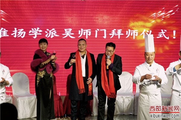 在随后举办的“中国淮扬学派吴师门拜师仪式”上,10位来自陕西淮扬菜行业的青年代表,则向中国淮扬学派吴师门吴利飞先生行拜师礼,敬拜师茶,接拜师礼。