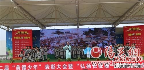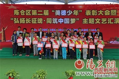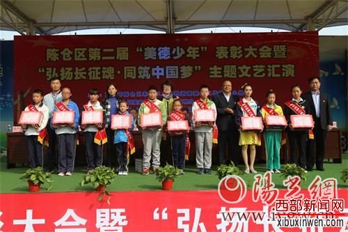 阳光讯(齐小伟 记者 董宁宁)10月19日下午,陈仓区第二届美德少年表彰大会暨“弘扬长征魂·同筑中国梦”文艺汇演在陈仓初中隆重举行,10名美德少年和10名提名奖获得者受到表彰。