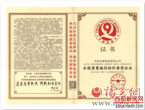 阳光讯(记者 董宁宁)日前,中铁宝桥获得中国质量检验协会颁发的“全国质量诚信标杆典型企业”荣誉称号。这是继2015年后,连续两年获得“全国质量诚信标杆典型企业”荣誉称号。
