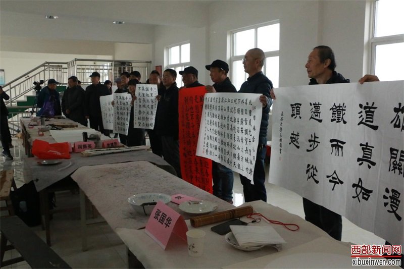 当日,书画下乡活动吸引了甘午村及附近村庄的书画爱好者、甘午初级中学的部分教师共100余人。