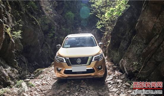 在难度不高的路段,途达利用高速四驱挡位也能顺利通过,但到下图这种碎石路面,还是得打开低速四驱模式,并打开机械牙嵌式后差速锁和B-LSD电子制动差速锁,让途达进入最强的越野状态,不过需要注意的是,踩油门的动作要轻柔,不能踩死了,不然车轮容易打滑失去附着力。另外,为了控制速度,最好挂入手动模式,并锁定一档。