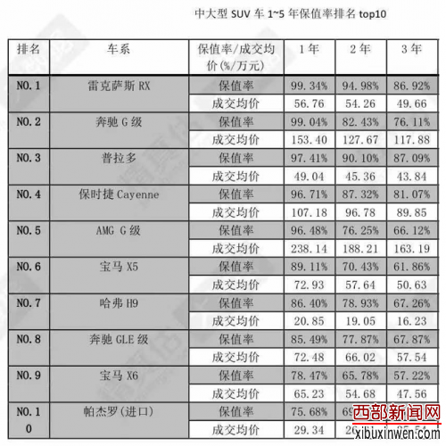 在中大型SUV车型1-5年保值率排名中,哈弗H9同样是唯一入选前十的国产品牌。