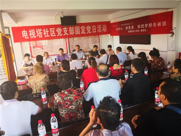 7月6日的党日活动中,参会的40余人就《严守政治纪律政治规矩 用忠诚和担当践行党的誓言》发声亮剑,并在《新疆驻陕西工作组党委、雁塔区电视塔社区党支部发声亮剑承诺书》上签名承诺。新疆籍务工经商人员代表努力曼宣读《写给电视塔社区党支部的一封信》,努力曼在我辖区经营着一家新疆餐馆,她说多年来,支部对他们一家开展了持续的关心和帮助,及时帮助他们解决生活和经商中的一些困难,他们生活的很好,对支部表达了深深的感谢。之后举行了民族团结一家亲“结亲交友”仪式,杨渭锋同志介绍了“结亲交友”的来源、目的以及对于在外新疆人的重要意义,并同努力曼一家结亲交友,在以后的生活中守望互助。最后,感党恩、听党话、跟党走,民族团结麦西来甫大家跳,大家跟随着音乐起舞,好一幅欢乐和谐的画面。