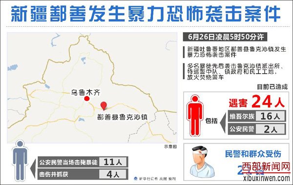 西部新闻网讯 26日凌晨5时50分许,新疆吐鲁番地区鄯善县鲁克沁镇发生暴力恐怖袭击案件,多名暴徒先后袭击鲁克沁镇派出所、特巡警中队、镇政府和民工工地,放火焚烧警车。